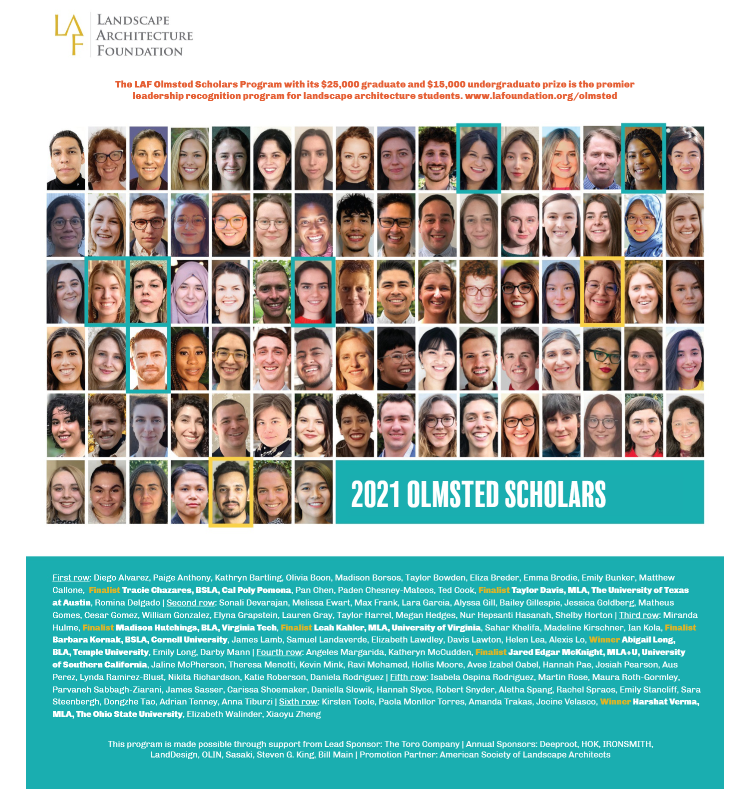 This is an article about the LAF 2021 selected Olmsted Scholar Nominee Winners. Angeles Margarida was one of these nominees.