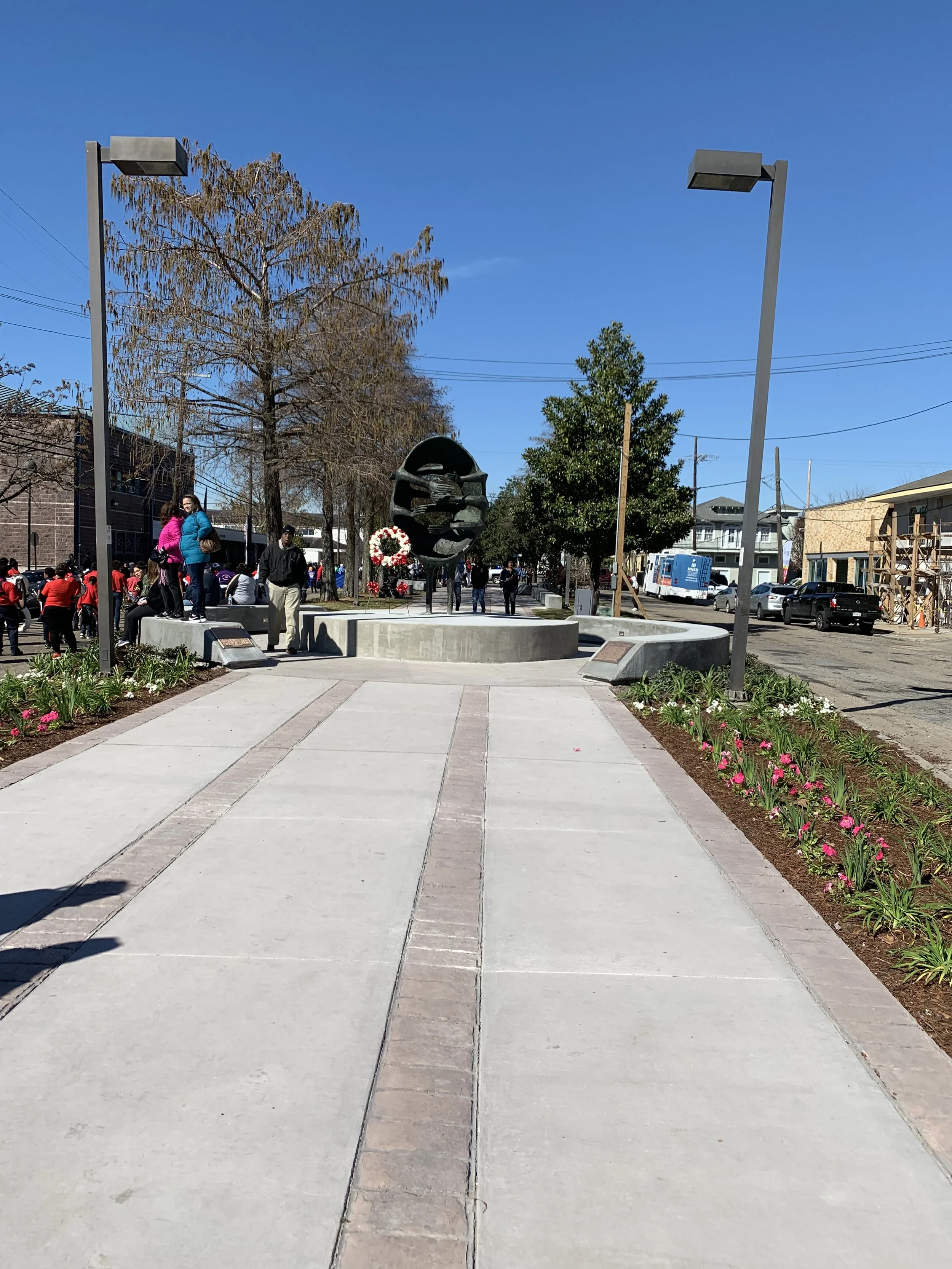 Hayden Plaza was a plaza renovation project in the Central City neighborhood of New Orleans, Louisiana. It occupies a neutral ground area on a street dedicated to the memory of Dr. Martin Luther King Jr., where the public art of internationally recognized sculptor, Frank Hayden, serves as the central focus. This celebrated project had to appeal simultaneously to tourists from across the globe, Central City residents, the daily users of the space, as well as a very active New Orleans Civil Rights community, who consider the space sacred ground. Engagement happened on multiple levels in multiple venues and over a longer course of time. This project was completed in 2016.