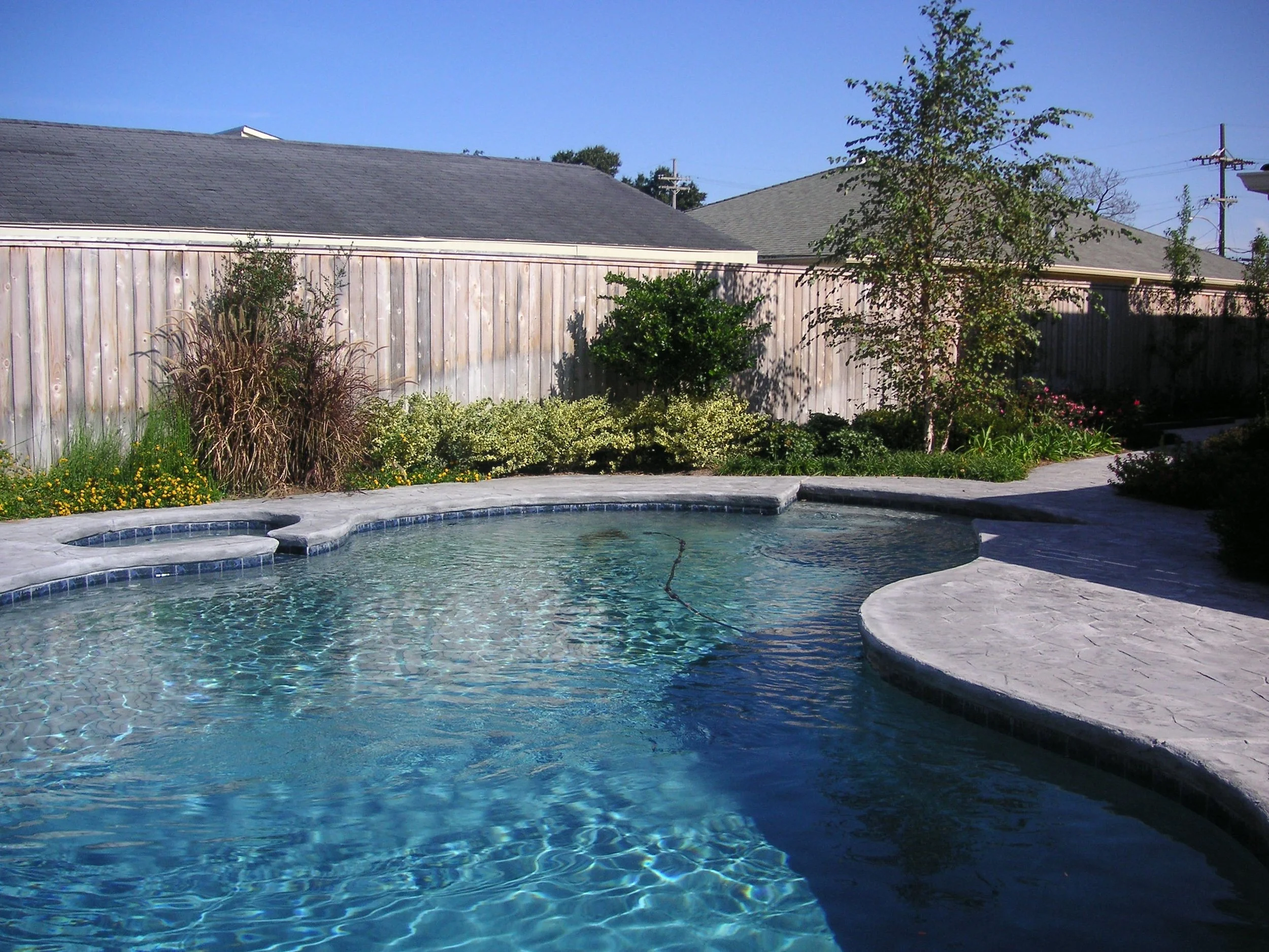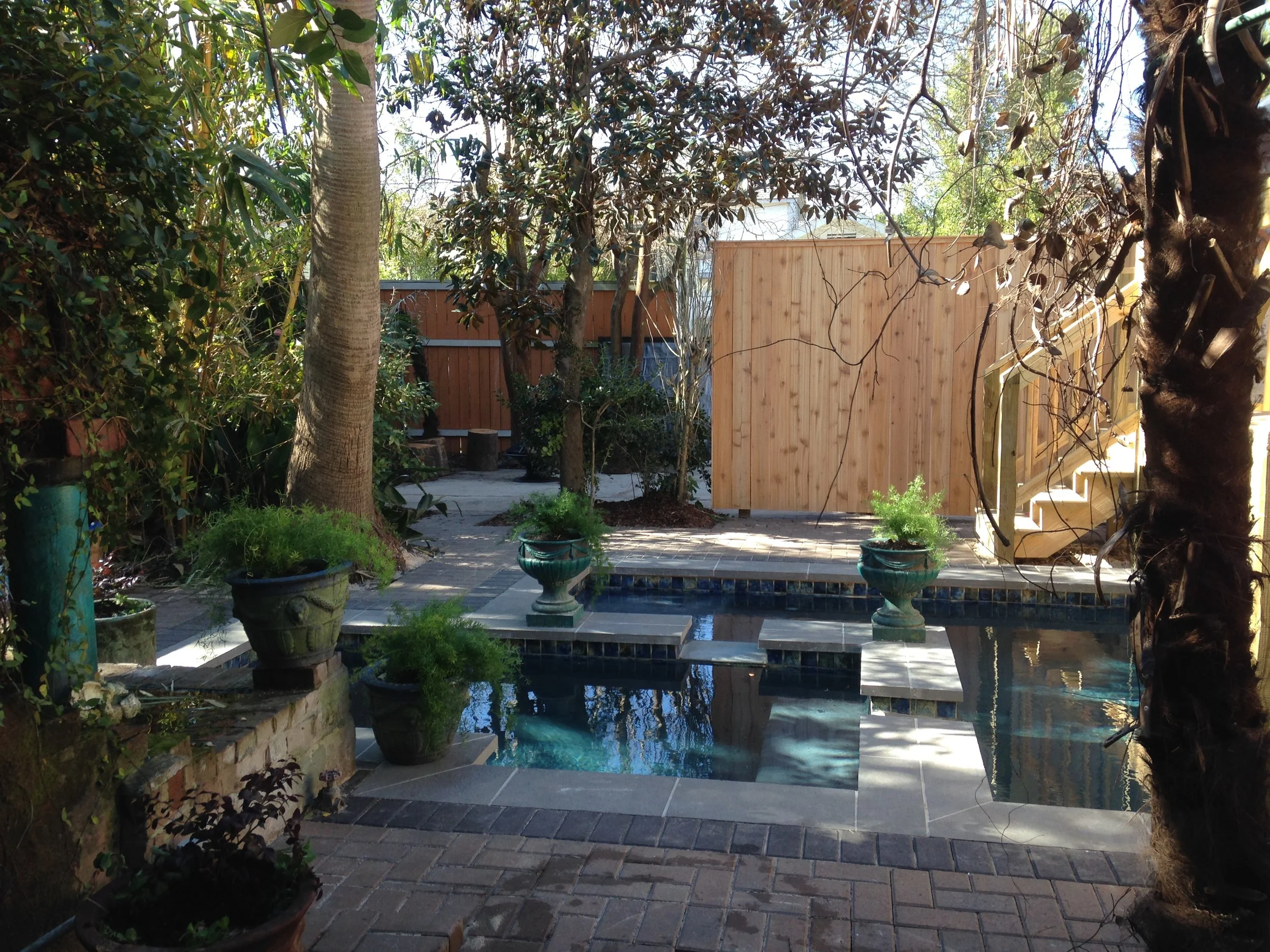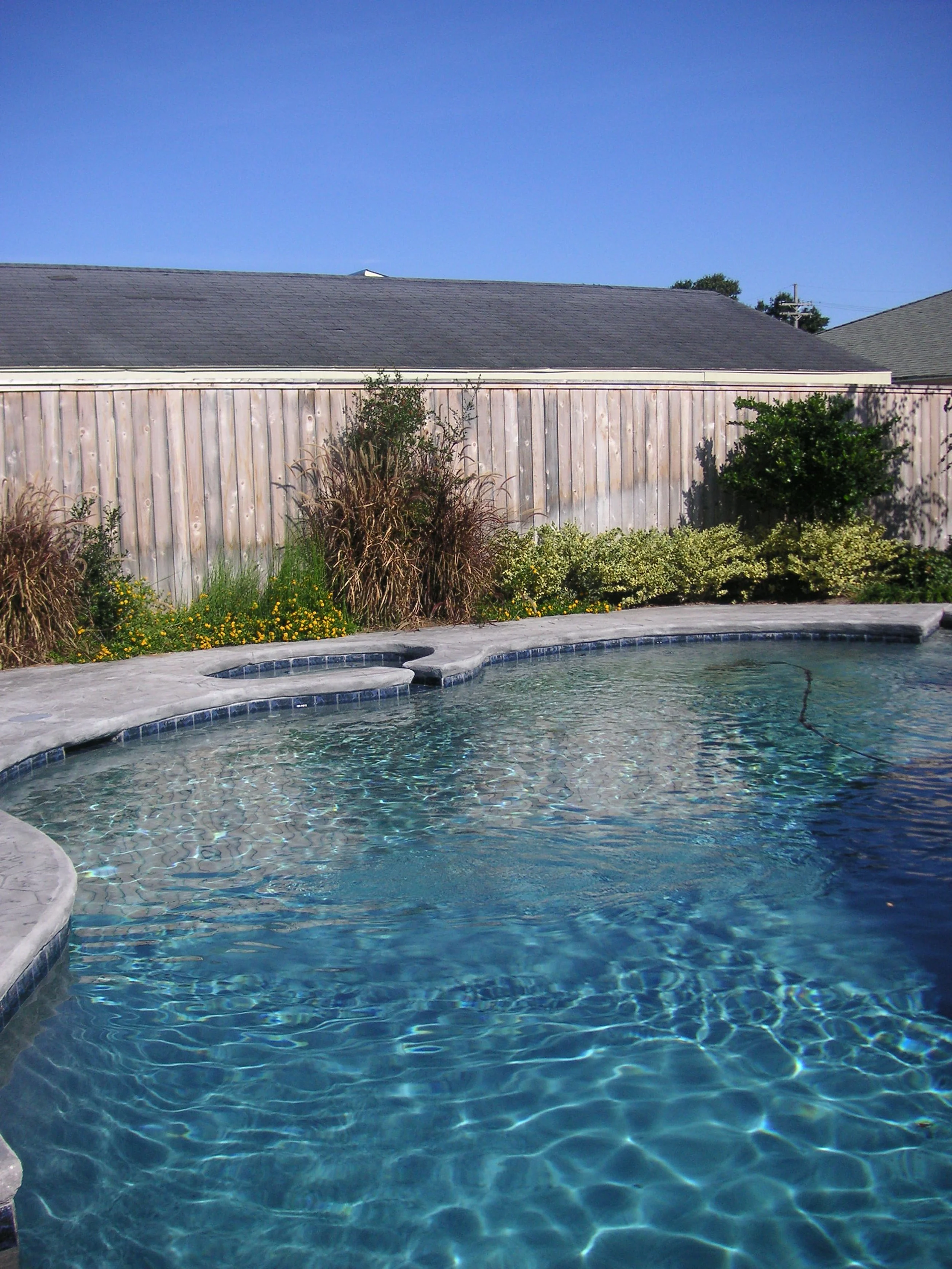 The selected design focused on an L shaped pool design, including a spa and a water fall feature. A salt water pool was selected, as well as plants that are native or well adapted to the New Orleans climate.