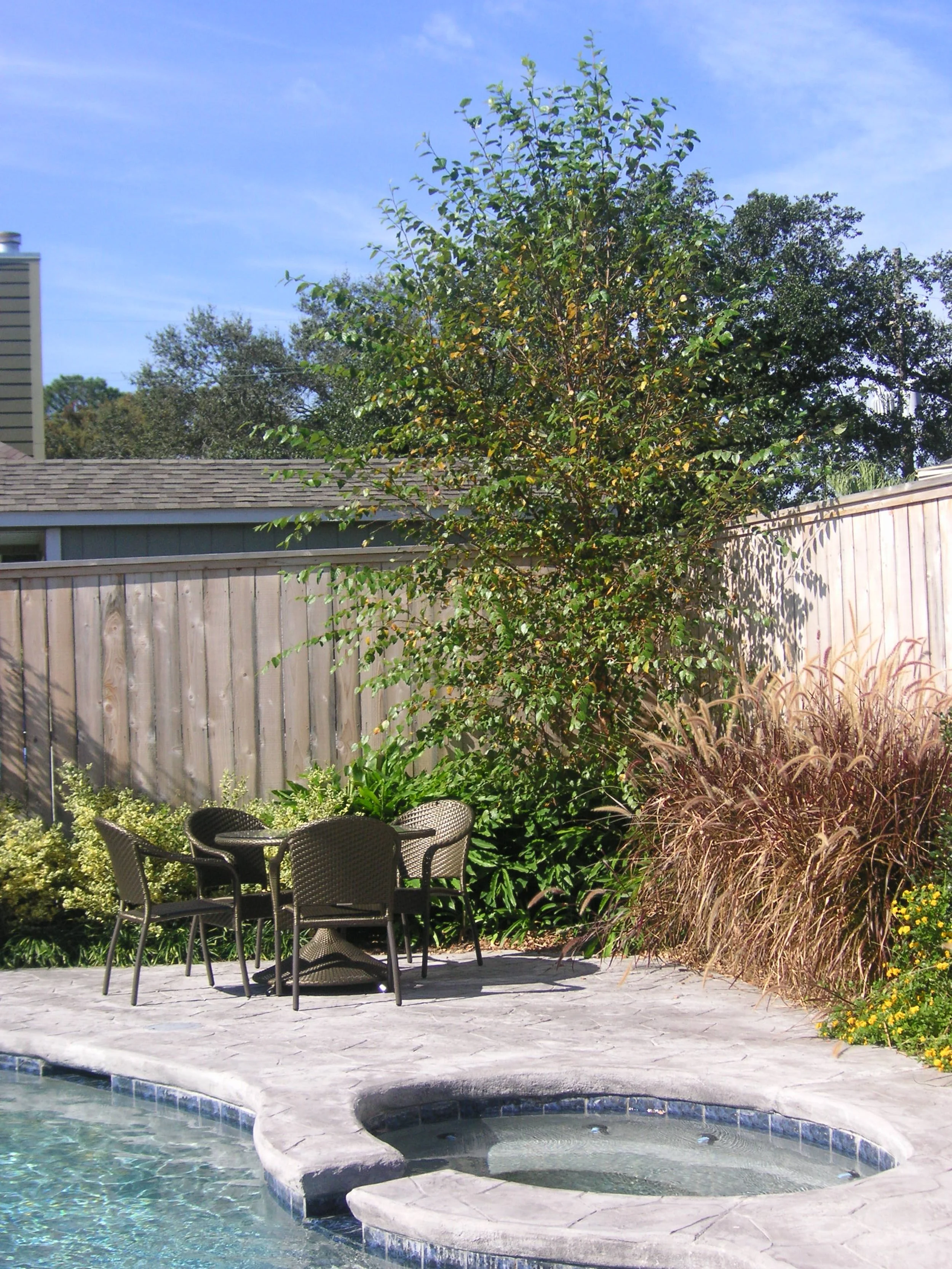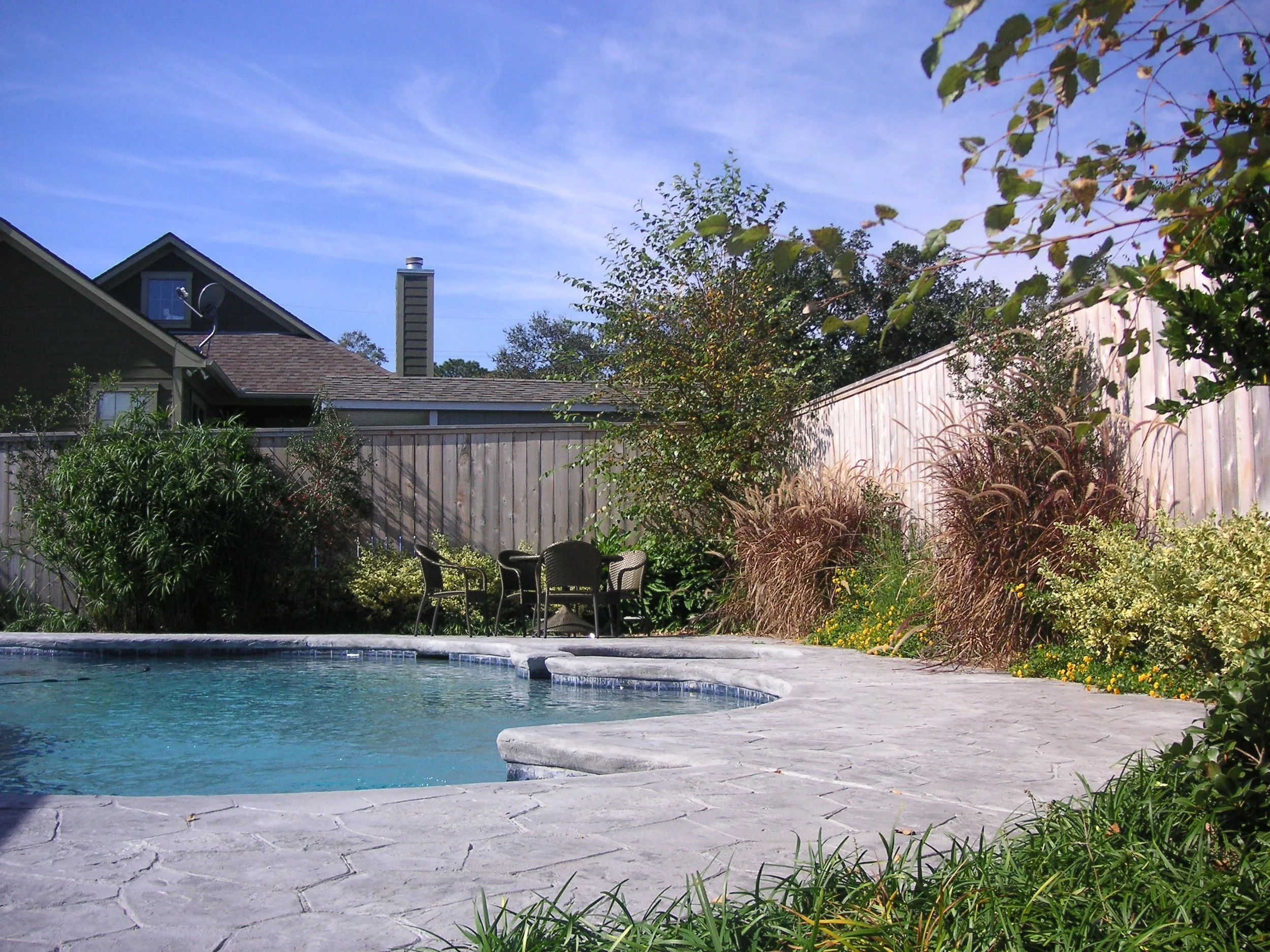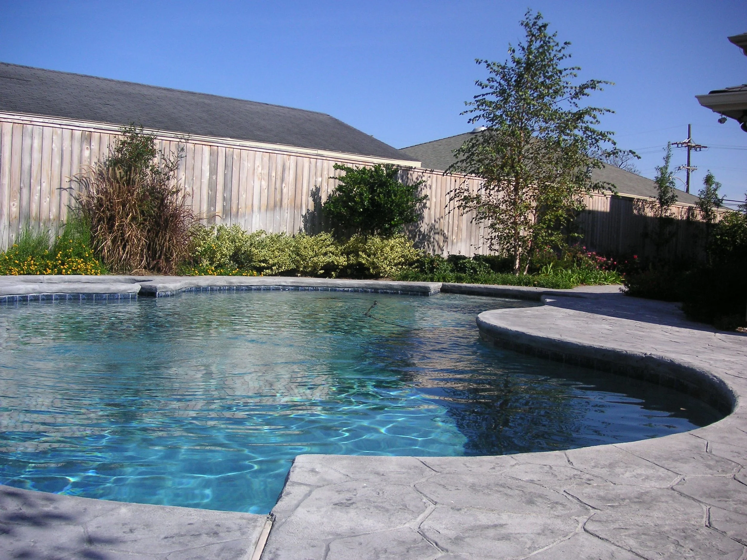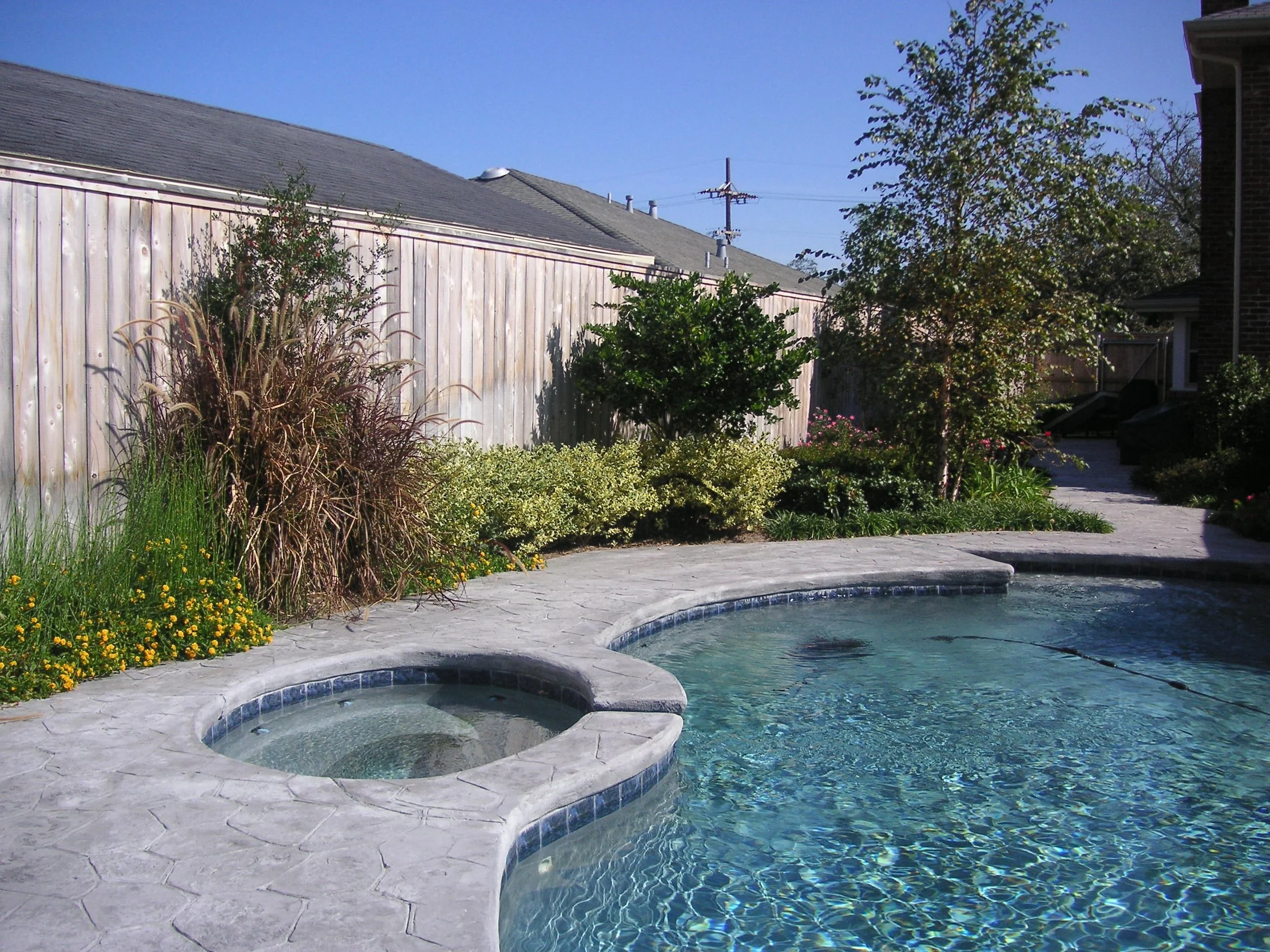 The selected design focused on an L shaped pool design, including a spa and a water fall feature. A salt water pool was selected, as well as plants that are native or well adapted to the New Orleans climate.